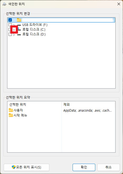 - 인덱싱 위치에 필요한 폴더 추가