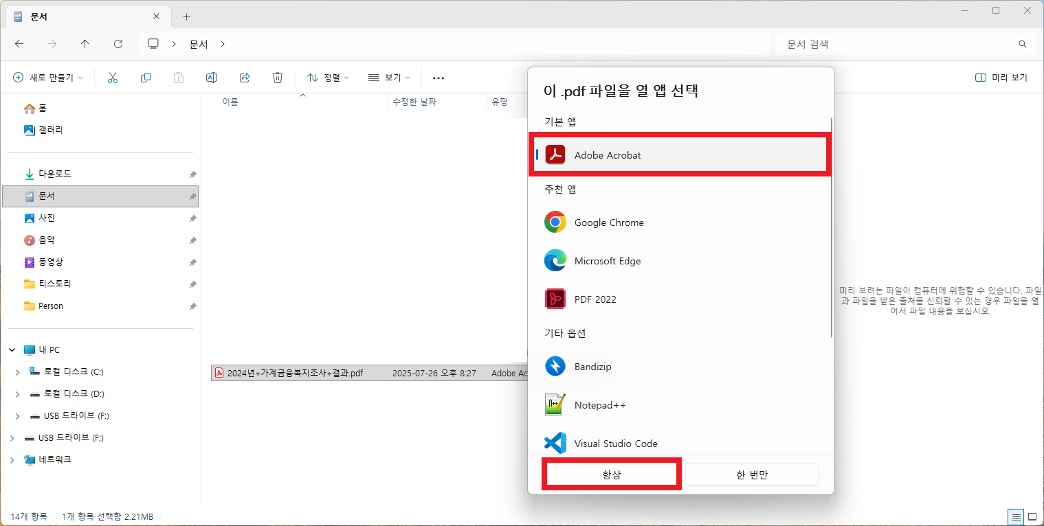 특히 Windows 업데이트 이후에는 PDF 기본 앱이 Edge로 돌아가는 사례가 종종 있습니다.