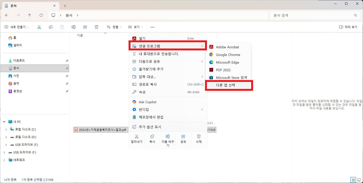 이 방법이 가장 빠르게 기본 PDF 프로그램을 바꾸는 방법입니다.