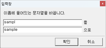 오타를 수정할 경우 문자열 바꾸기를 눌러 바꿀 문자열과 변경할 문자열을 각각 적어주고 확인을 누릅니다. 바꿀이름을 보게되면 sampl에서 sample로 수정된 것을 확인할 수 있습니다.