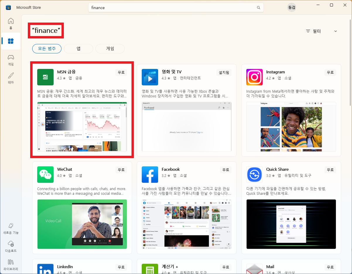 - 목록에서 'MSN 금융' 위젯을 찾아 추가합니다.