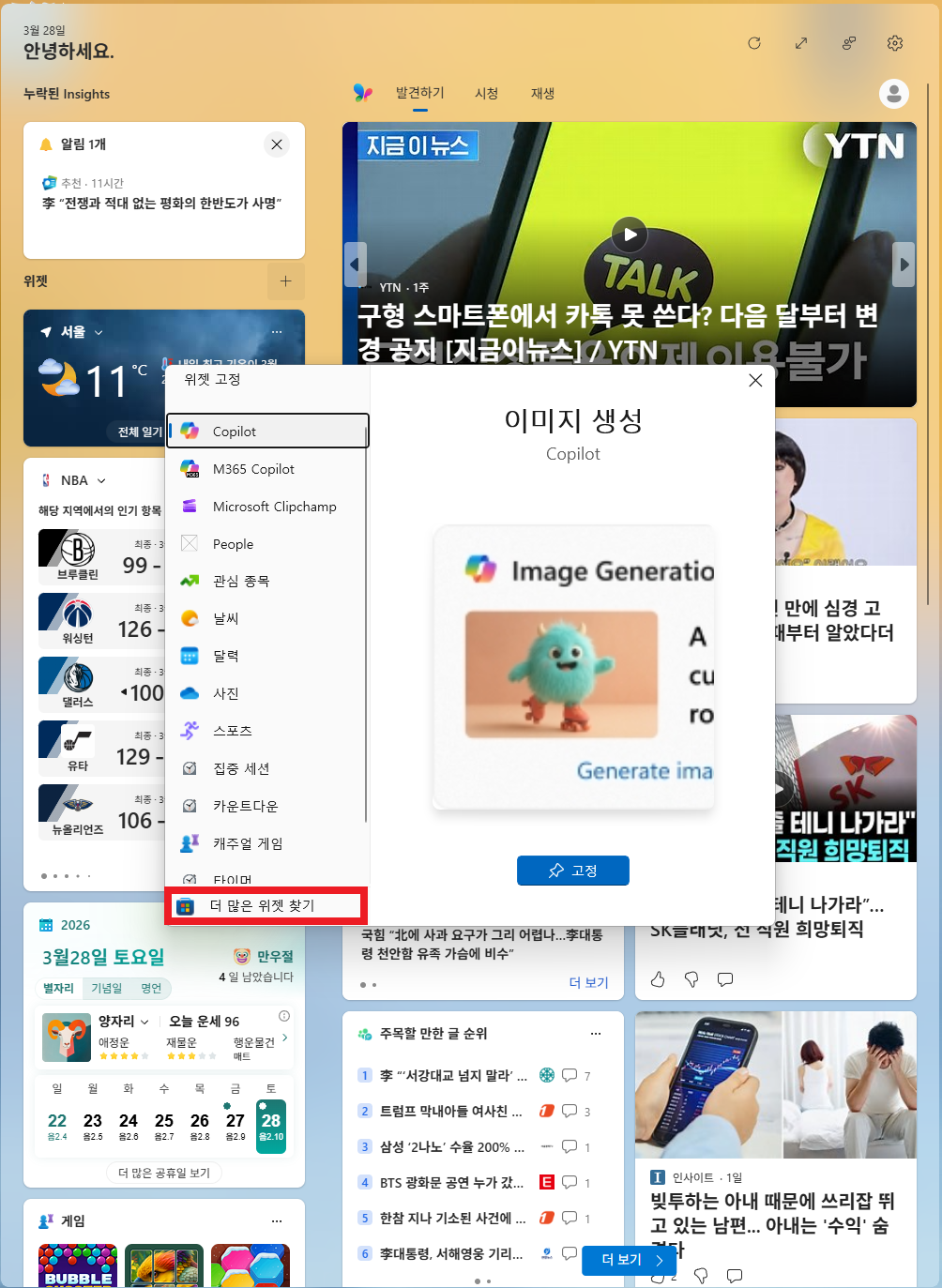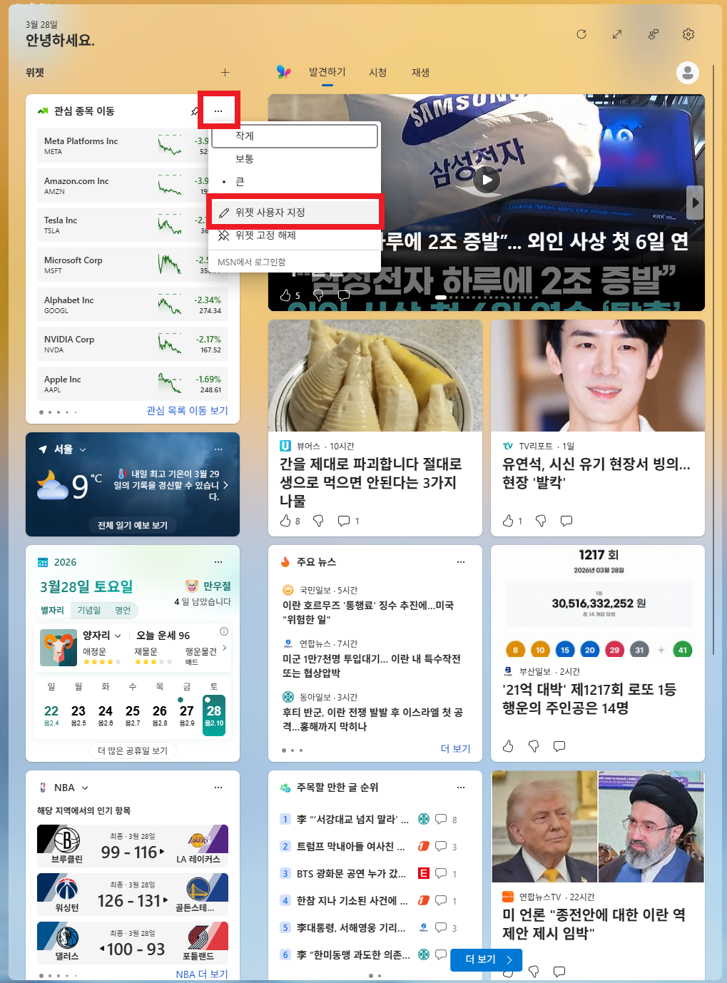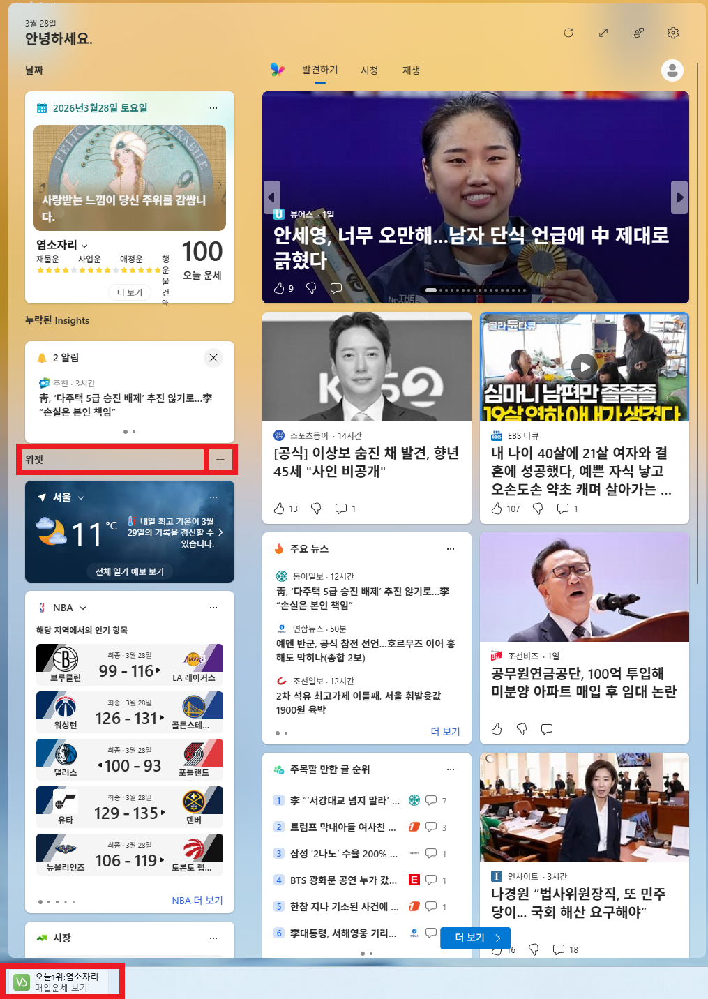 1. 윈도우 11 위젯(Widgets) 기능으로 종목 배치하기