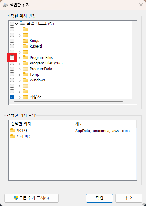 - 인덱싱 위치에 필요한 폴더 추가