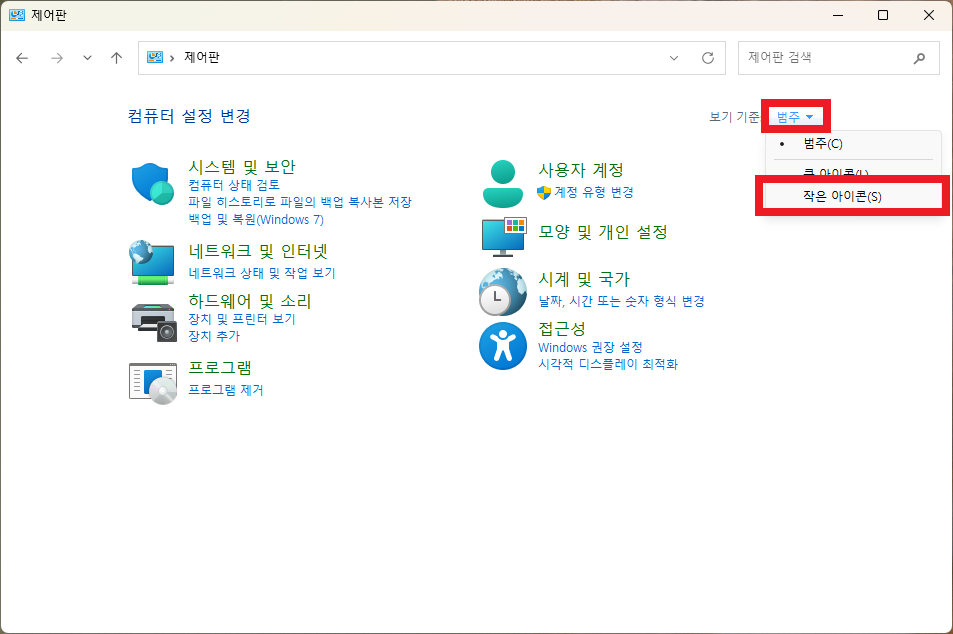 - 보기 → 옵션