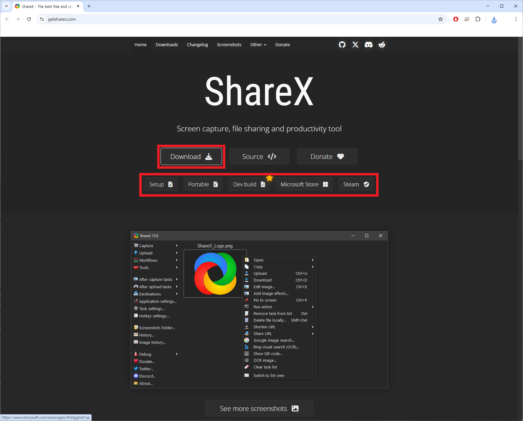 ShareX는 화면 캡처 뿐만아니라 녹화 기능까지 지원해주는 무료 프로그램입니다. 워터마크와 광고로부터 벗어나기 위해 오픈 소스 프로그램을 찾아보던 중 알게되었는데 지금까지 유용하게 쓰고 있습니다. 컴퓨터를 새로 설치할 때마다 기본적으로 설치하는 프로그램이 있는데 ShareX도 그 중 하나입니다. 이번 시간에는 ShareX의 기능에 대해 자세히 알아보도록 하겠습니다. 설치 형태는 Setup, Portable, Dev build 등 여러가지가 있으니 본인에게 맞는 유형을 선택하면 됩니다.