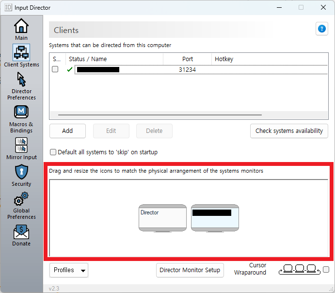 슬레이브 컴퓨터를 추가하기 위해 인풋 디렉터를 실행한 뒤 Client Systems 메뉴 > Add를 클릭합니다.