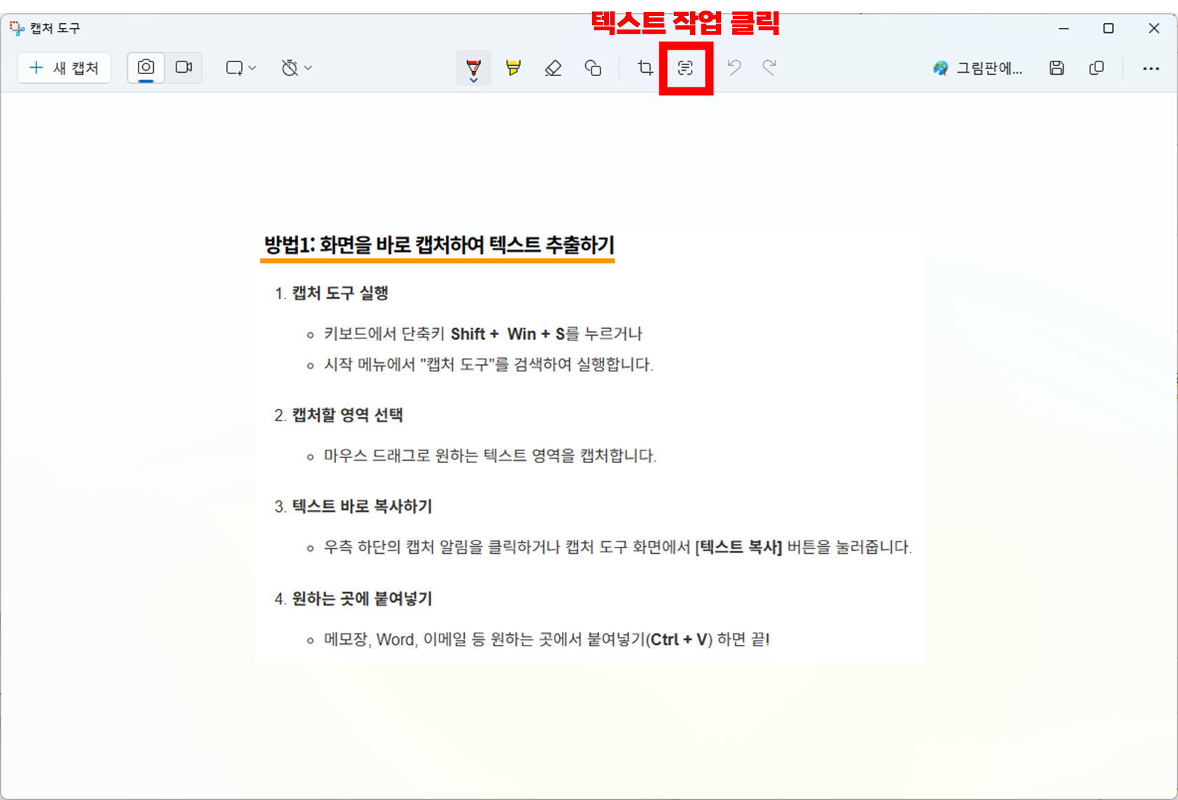 [윈도우11] 캡처 도구를 이용한 텍스트 추출