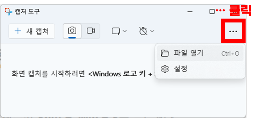 - 캡처 도구를 실행한 후 열기 메뉴에서 기존 이미지를 선택합니다.